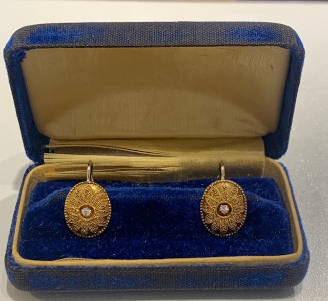 Antique Victorian Diamond Leverback Earrings in 14K Yellow Gold, Converted from Cufflinks! 2 Old Mine Diamonds=.10CTTW