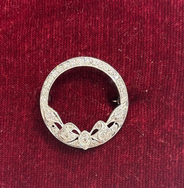Antique Natural Diamond & Platinum Bow Motif Brooch, D=1CTTW