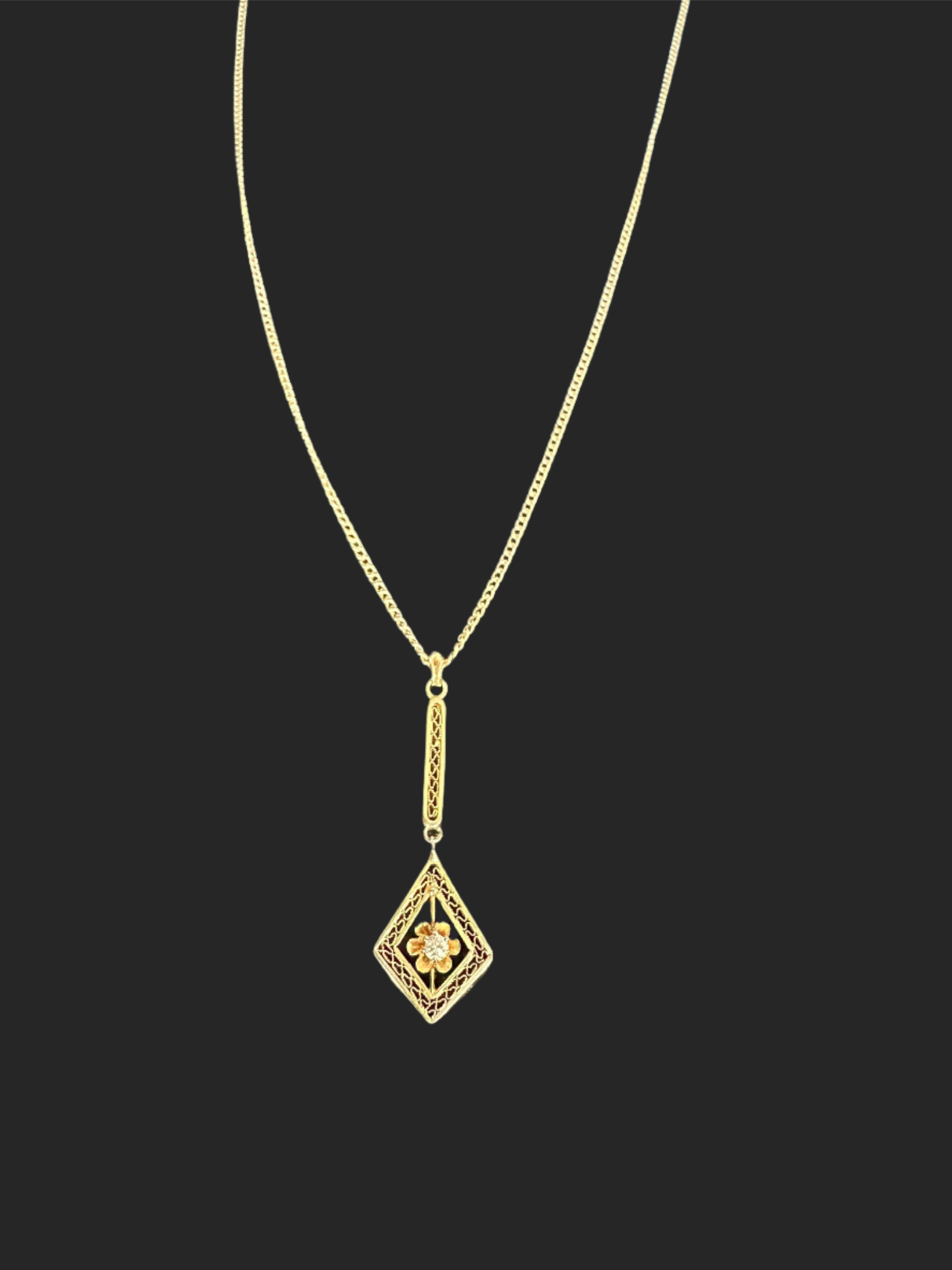 Antique 14K Diamond Lavalier Pendant on 10K Antique 17" Chain. D=.04CT